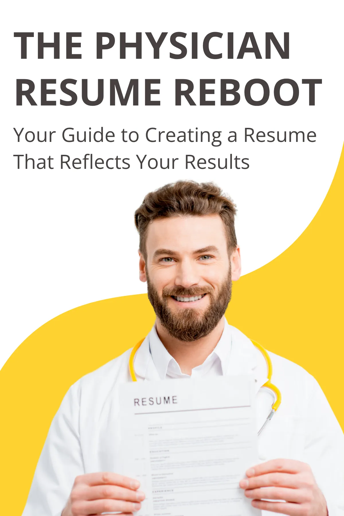 Start now with our FREE guide: The Physician Resume Reboot-Your Guide to Creating a Resume That Reflects Your Results